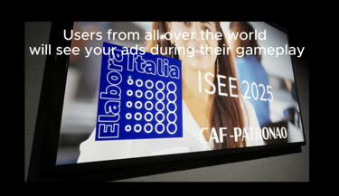 VENDITTELLI GAMES offers you the opportunity to advertise your company within some of our video games as in the case of our first world launch game THE HOLY KIENGIR - Influencers -. Millions of users from all over the world will be able to see your company advertised directly within our Gameplay in real time! Discover our offers and take advantage of the really convenient prices considering the thousands of gaming sessions that take place daily with our video games! Find the formula that best meets your needs considering that there are still 3 spaces available so don't miss this fantastic opportunity!